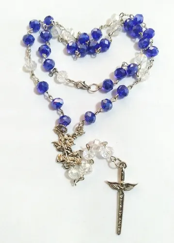 Terço São Miguel Arcanjo 9 Saudações Em Cristal 8mm - Colar Imagem
